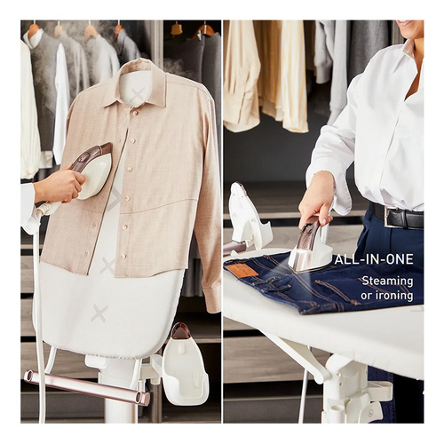 جا به جایی آسان به وسلیه چرخ های پایه اصلی, میز اتوی بزرگ برای اتوکشی راحت تر لباس هایی مانند پیراهن، کاپشن، شلوار، دامن و تی شرت, برخورداری از فناوری بویلر دوگانه برای حداکثر کارایی و از بین بردن چین و چروک های سخت, سری دارای LED برای ایجاد دید کافی روی پارچه هنگام بخاردهی, قابلیت تنظیم میز اتو در 5 زاویه