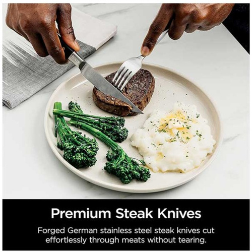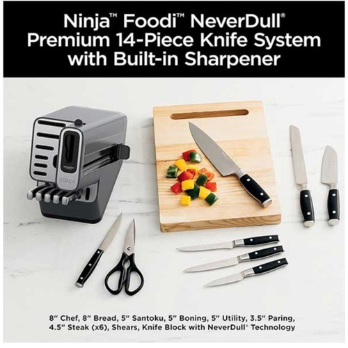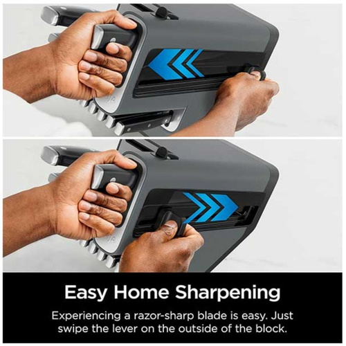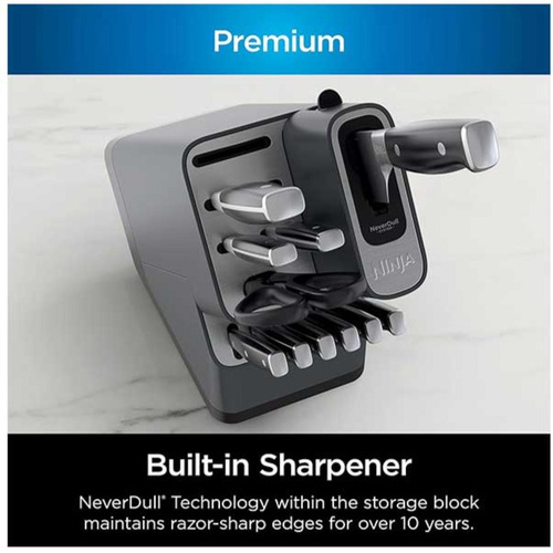 NeverDull Technology: تیزکن داخلی خودکار در بلوک چاقو, امکان تیز کردن چاقوها در شیار تعبیه شده روی بلوک, به توصیه کمپانی نینجا تیز کردن چاقوها را هر 2 هفته یکبار به انجام برسانید, به توصیه کمپانی نینجا چاقوها را در ماشین ظرفشویی قرار ندهید. بعد از استفاده چاقوها را به صورت دستی شستو داده و خشک کنید